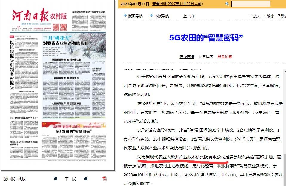 河南省現(xiàn)代農(nóng)業(yè)大數(shù)據(jù)產(chǎn)業(yè)技術(shù)研究院有限公司被人民日?qǐng)?bào)等媒體報(bào)道