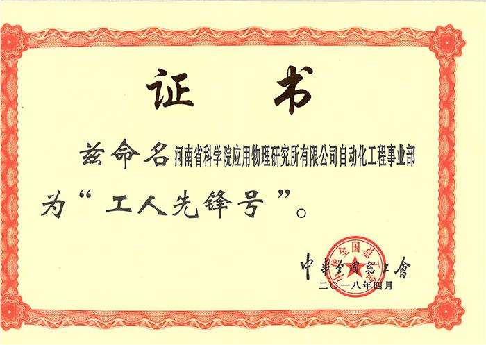 近日,河南省科學院應用物理研究所有限公司自動化工程事業(yè)部被中華全國總工會授予全國“工人先鋒號”榮譽稱號。全國“工人先鋒號”是中華全國總工會評選的國家級先進集體榮譽稱號,是全國工人戰(zhàn)線的最高榮譽。對公司而言,是一份前所未有的殊榮。